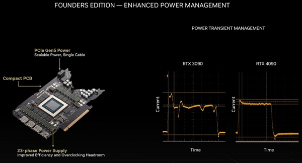 很多人不了解,对电源来说,显卡供电不只是看功耗高低,稳定性更重要,如果电流、电压频繁波动,对电源的压力更大,RTX 4090显卡这次对电源供电应该更友好。