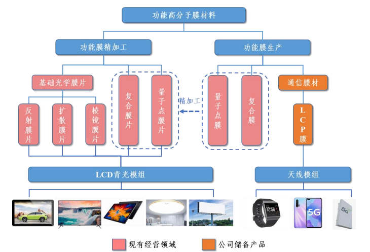 在新型显示领域,公司生产的各类光学膜片已广泛应用于液晶电视、台式显示器、 笔记本电脑、车载显示等终端显示器件;目前贝迪新材的量子点膜片产品在车载显示器、笔记本电脑、平板电脑等领域均有送样,并已通过冠捷,康冠,惠科,天马,TCL华星,京东方等客户的认证并形成订单。