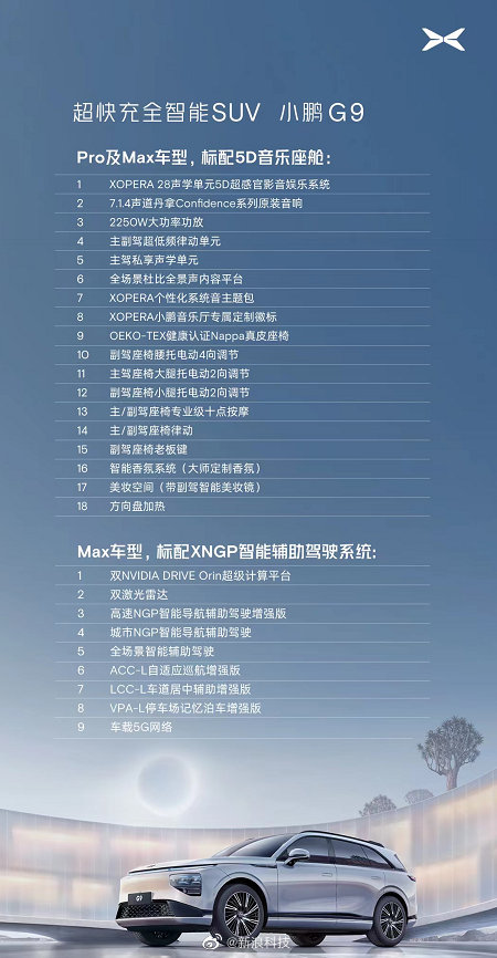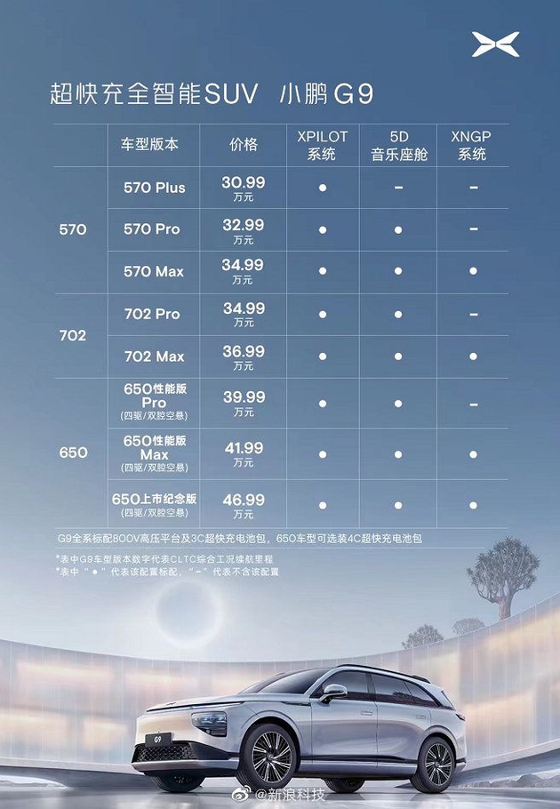 新浪科技讯 9月23日下午消息,小鹏汽车宣布,针对G9上市后用户反馈的产品配置复杂等情况,对G9车型版本命名及配置进行调整,并将选择率高的功能进行标配。调整后车型及全国建议零售价如下: