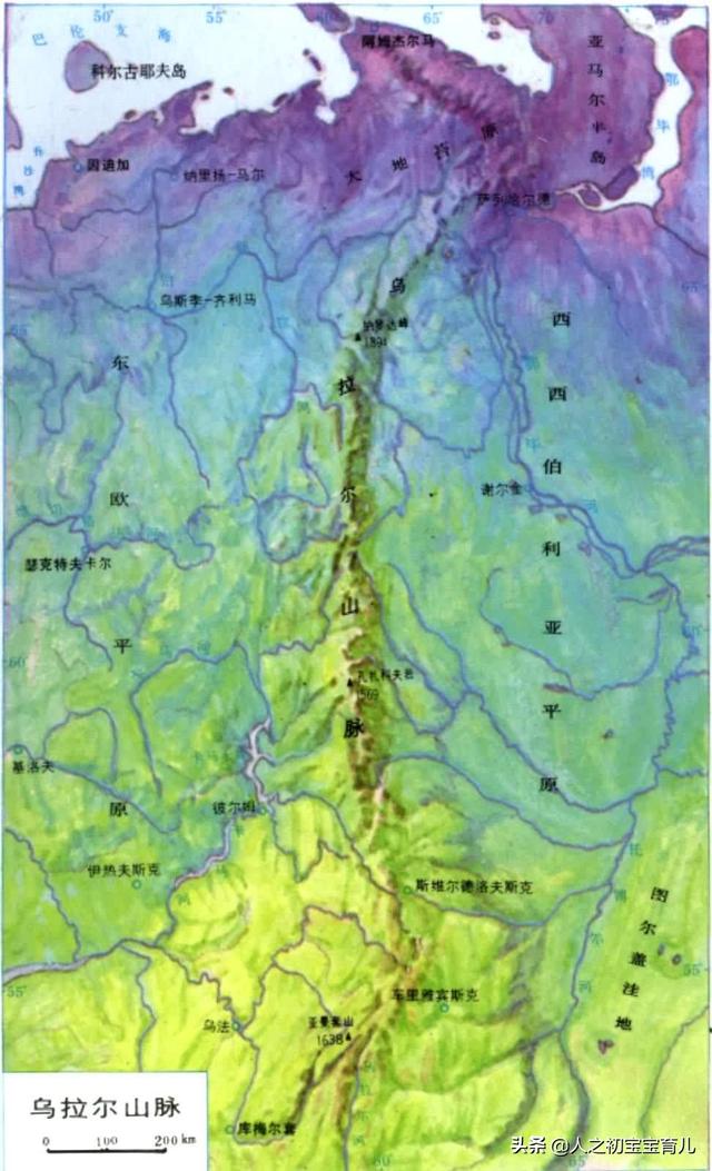 山势一般不高,平均海拔500米—1200米;亚极地1894米的人民峰是乌拉尔的最高峰。山脉的宽度为40千米—150千米。中段低平,成为欧、亚两洲的重要通道。