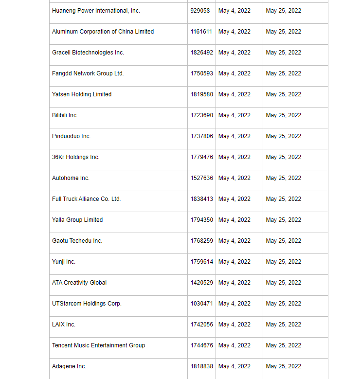鉴于过去几批操作,SEC会根据上市公司提交年报的顺序更新名单,所以理论上所有的中概股近期都会经历这个流程。