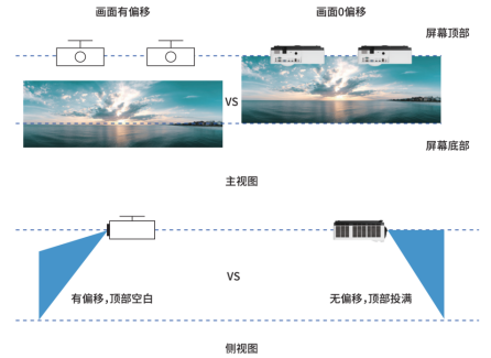 李白短焦系列拥有先进的零偏移光轴设计,对实际空间的利用达到最大化,可杜绝机器倾斜安装和二次梯形校正导致的光损,真正做到光效无损输出,不仅为用户提供优质的影像效果,还在安装方面实现了优化。在光路设计上,投影机与空间融合感更好,能完美满足各类沉浸式CAVE展厅的应用需求。