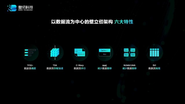 发布会上,壁仞科技联合创始人、CTO洪洲,详细介绍了原创架构——壁立仞。洪洲说,壁立仞架构以数据流为中心,对数据流进行深度的优化,通过六大技术特性,比较完整地解决了数据搬移的瓶颈和并行度不足的问题,使得BR100芯片在给定的工艺下实现了性能和能效的跨越式进步。