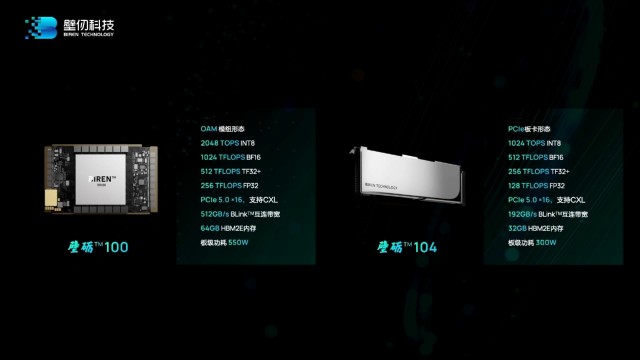与此同时,壁仞科技还发布了基于BR104的主流产品壁砺104,基于标准PCIe形态,功耗控制在300W以内,其形态较为紧凑,部署广泛、适应性强,可以适配多种2-4U的服务器,与客户现有的基础设施做到高度的兼容。