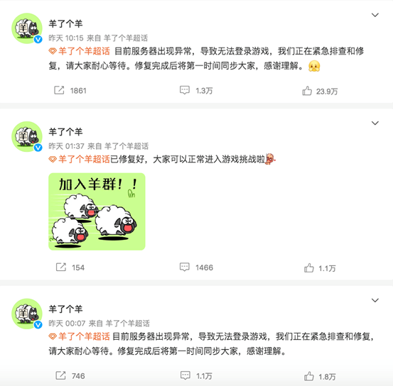 《羊了个羊》官微显示,自9月13日13点至9月14日10点,一天时间里《羊了个羊》的服务器已经崩了3次。为此,已经开始急招后端服务器开发,并称“推荐入职的奖励五千,自荐入职的奖金五千”。