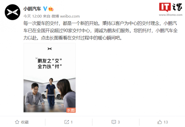 9 月 16 日消息,随着新能源汽车的发展,新能源车企的交付能力也越来越强,与此同时,交付中心等配套建设也不断增加。今日,小鹏汽车在社交平台上提及了交付问题。