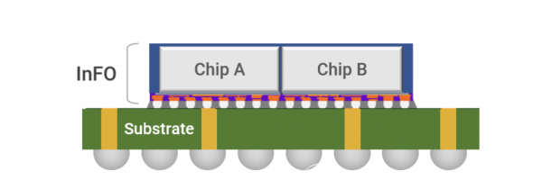 首先来看,台积电在2017年开发的InFO技术。实际上,InFO技术与大多数封装厂的Fan-out类似,可以理解为多个芯片Fan-out工艺的集成,主要区别在于去掉了silicon interposer,使用一些RDL层进行串连。苹果2016年推出的iPhone7中的A10处理器,采用台积电16nm FinFET工艺以及InFO技术,成功将AP与LPDDR整合在同一个封装中。