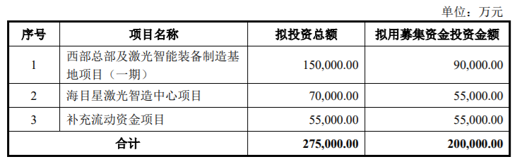 9月20日晚,海目星发布公告称,公司拟向不超过35名特定投资者发行股票,募集资金总额不超过20亿元。募集资金将用于西部总部及激光智能装备制造基地项目、海目星激光智造中心项目以及补充流动资金,共计投资27。5亿元。